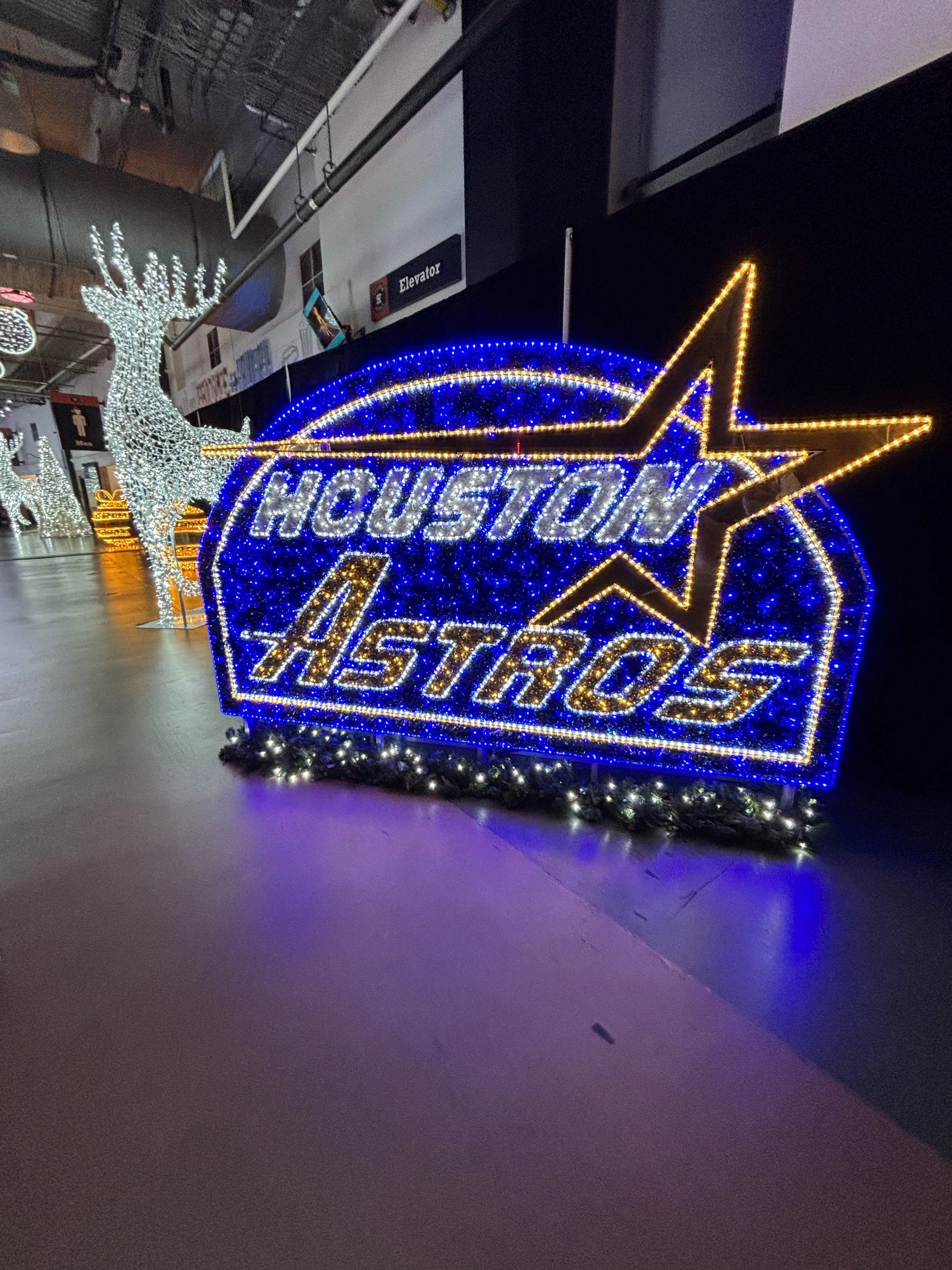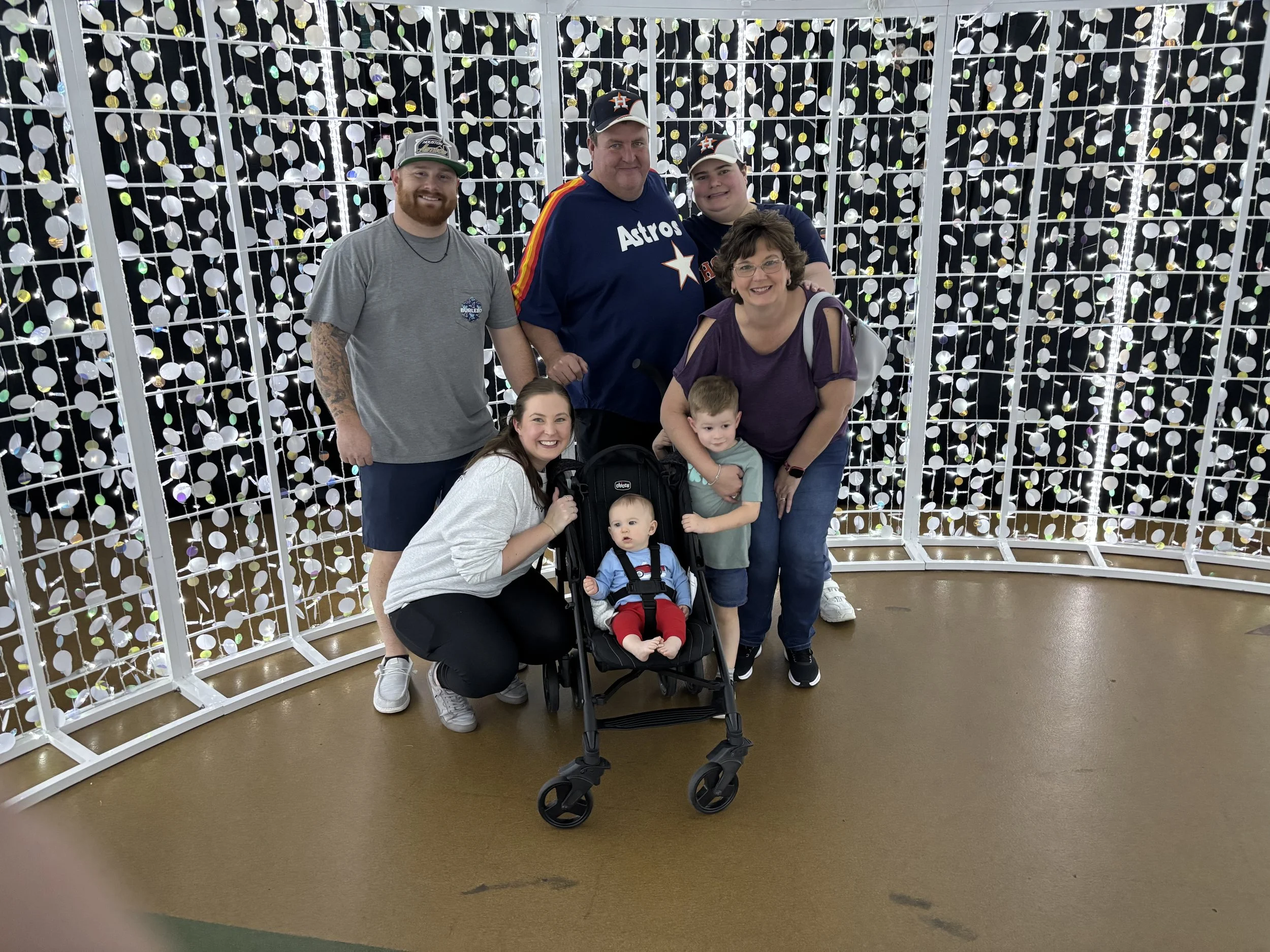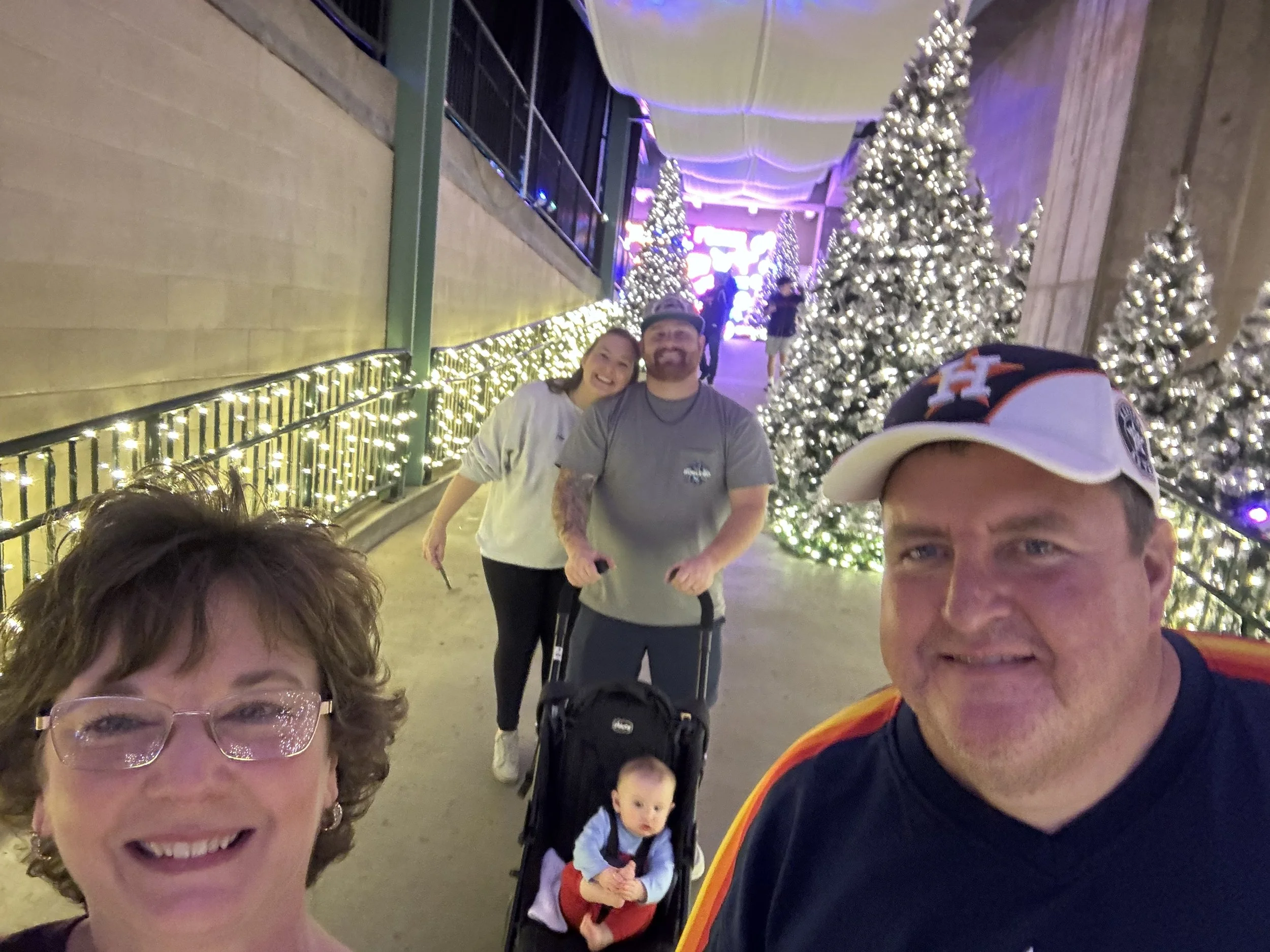 We are always looking for a special way to let Tommy enjoy his favorite time of the year! This year our daughter had mentioned that Daikin Park was hosting this Astros, Light up the Park. It looked like a cool event. Tommy loves Astros and Christmas lights so what a great combination. Plus being with our daughter and her family watching those grandbabies experience all the lights was just a bonus!