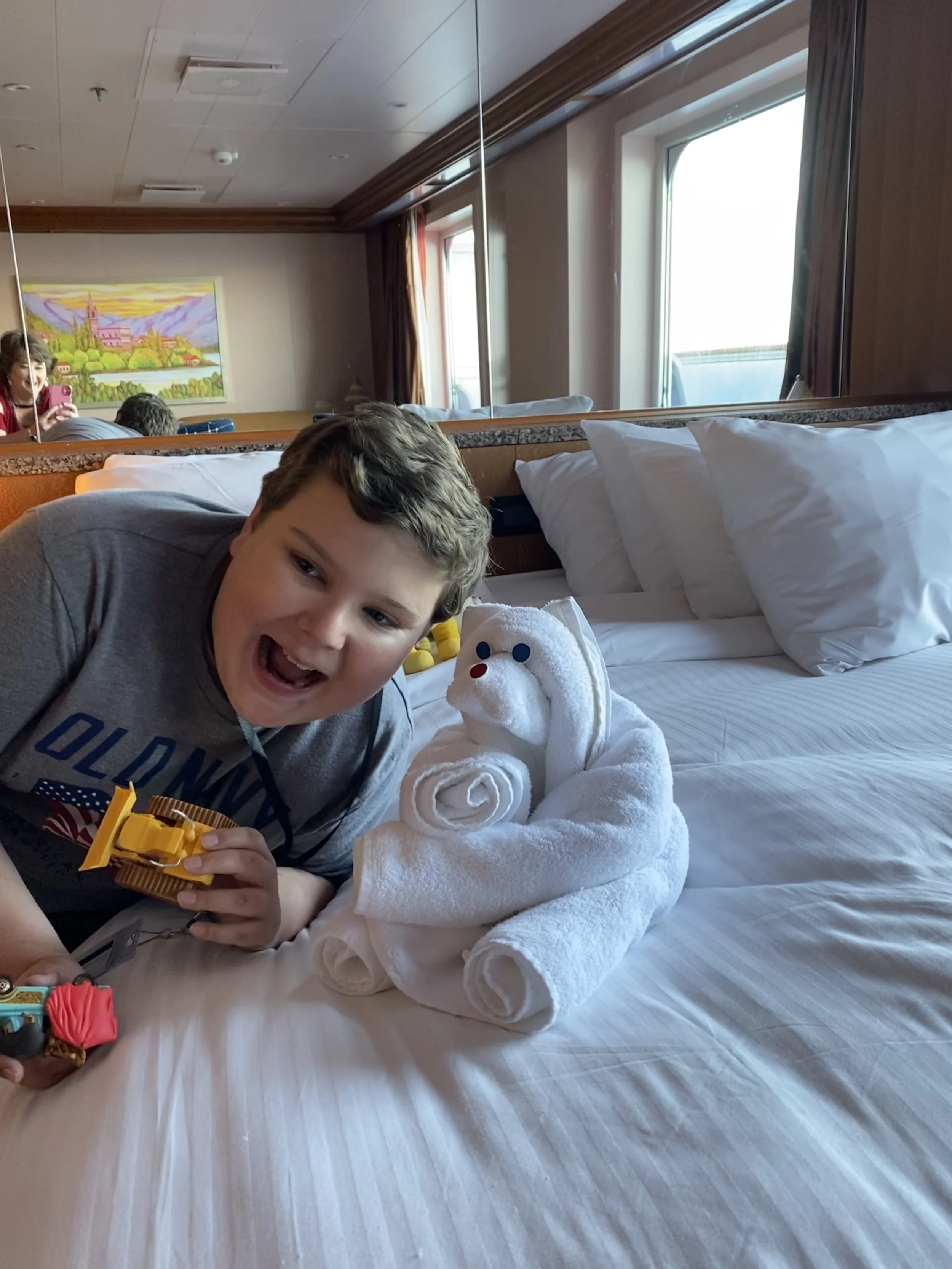 Tommy attended everything with us: Toured the ship, took photos, went to evening dinners, enjoyed “The Lion King” on the big screen for movie night, swam in the hot tub, etc. We even ran into some friends from Vidor. He was a bit confused as to why they were there. Especially a coach from school, he looked at her and said “no, not you!” She just laughed and was glad that he knew who she was!